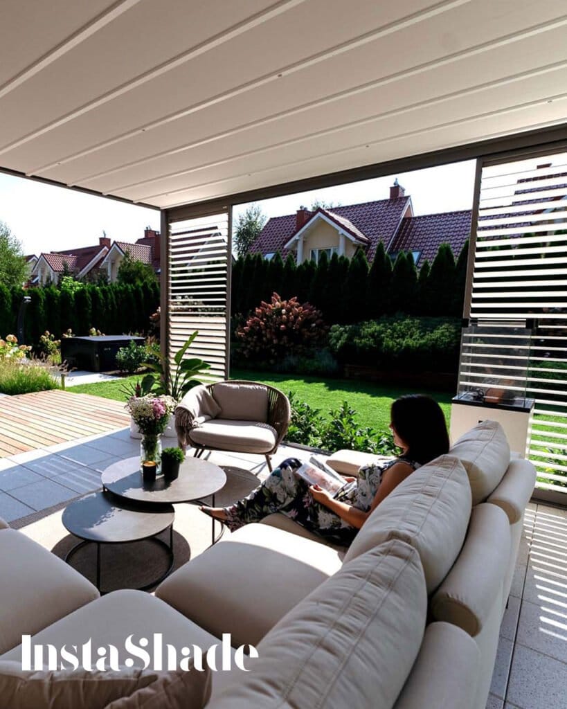 Instashade’s luxurious garden Pergolas, are meticulously crafted to offer unparalleled sun protection and unrivaled cooling capabilities. Elevating your outdoor gatherings to new heights of sophistication and comfort as you and your loved ones bask in the shade of these exquisite structures.