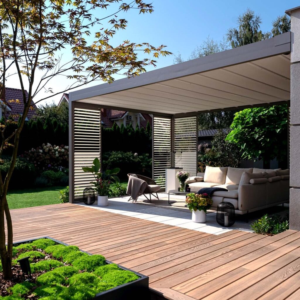 For those who like a sleek and modern design, The Cubic Pergola is an ideal choice. Its retractable fabric roof offers flexibility in managing sunlight and airflow, making it perfect for both sunny days and summer showers. The minimalist design seamlessly integrates into any garden setting, providing a stylish and functional outdoor space.