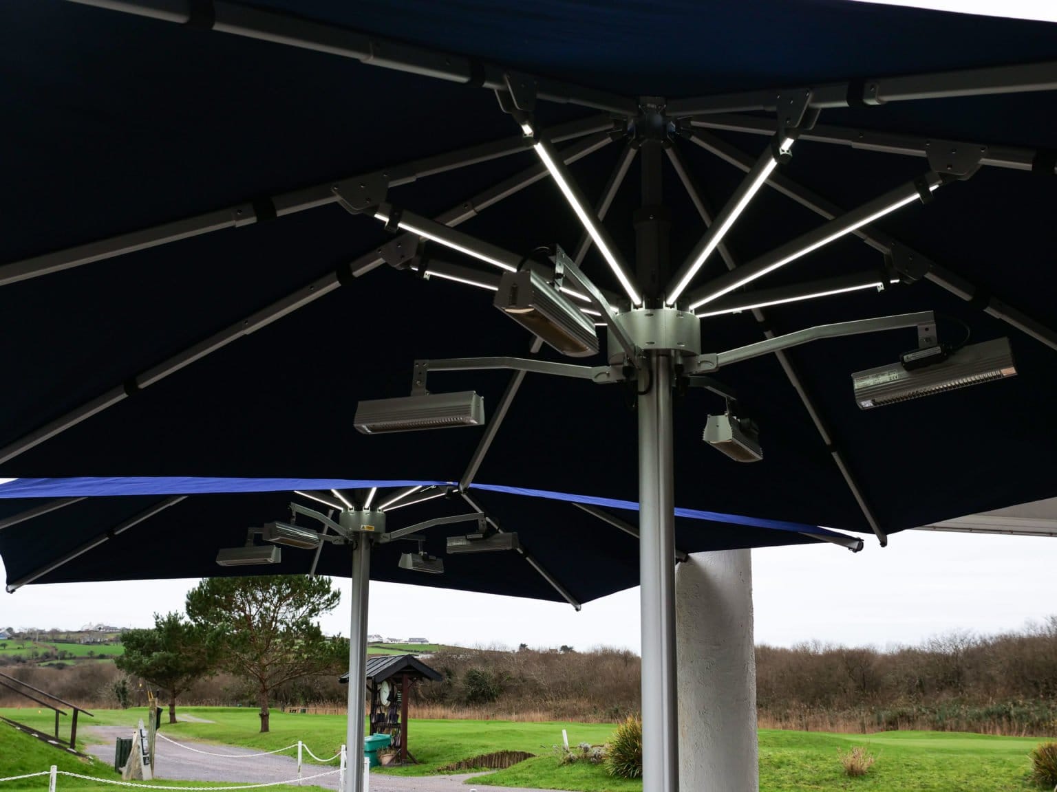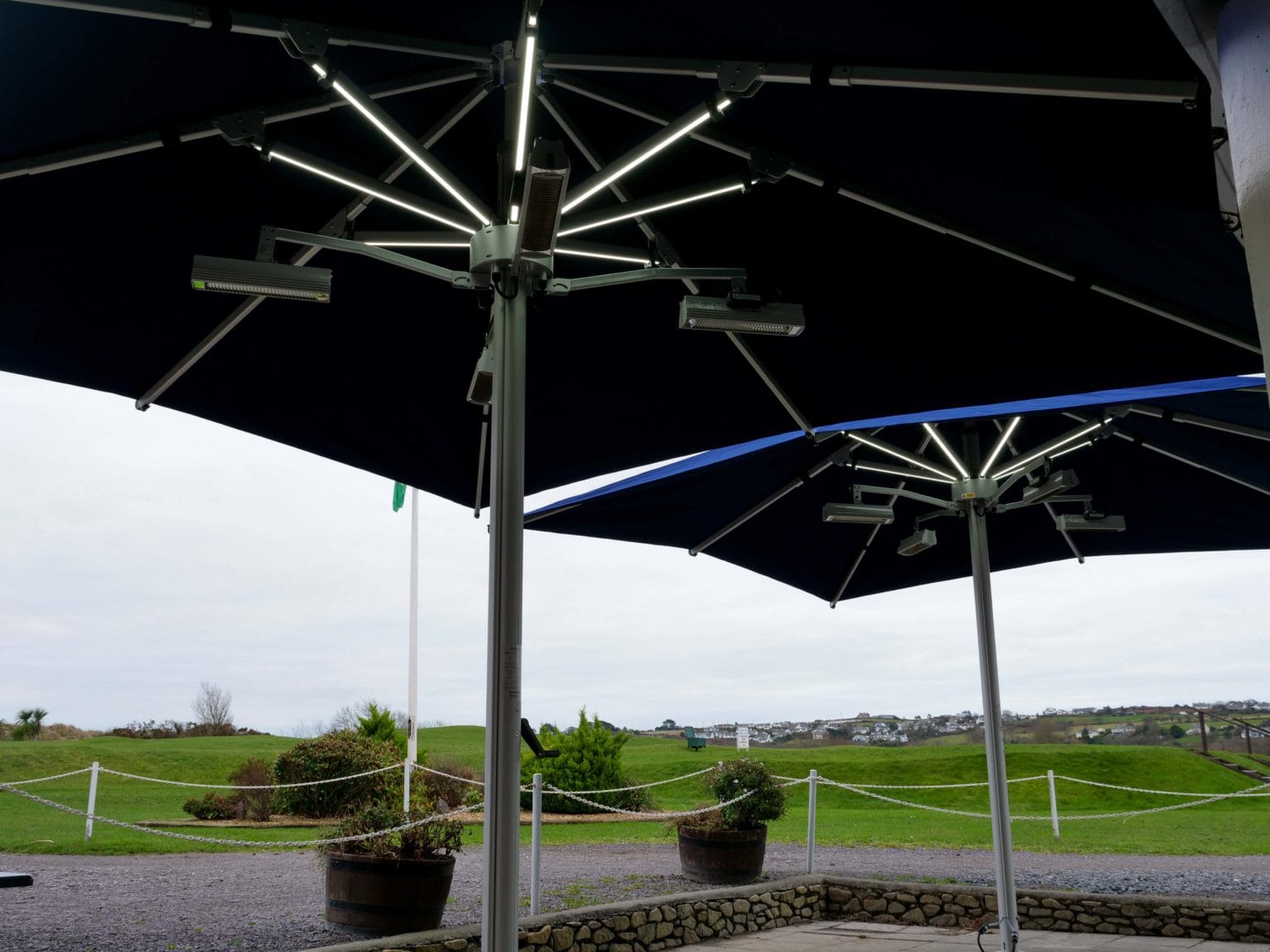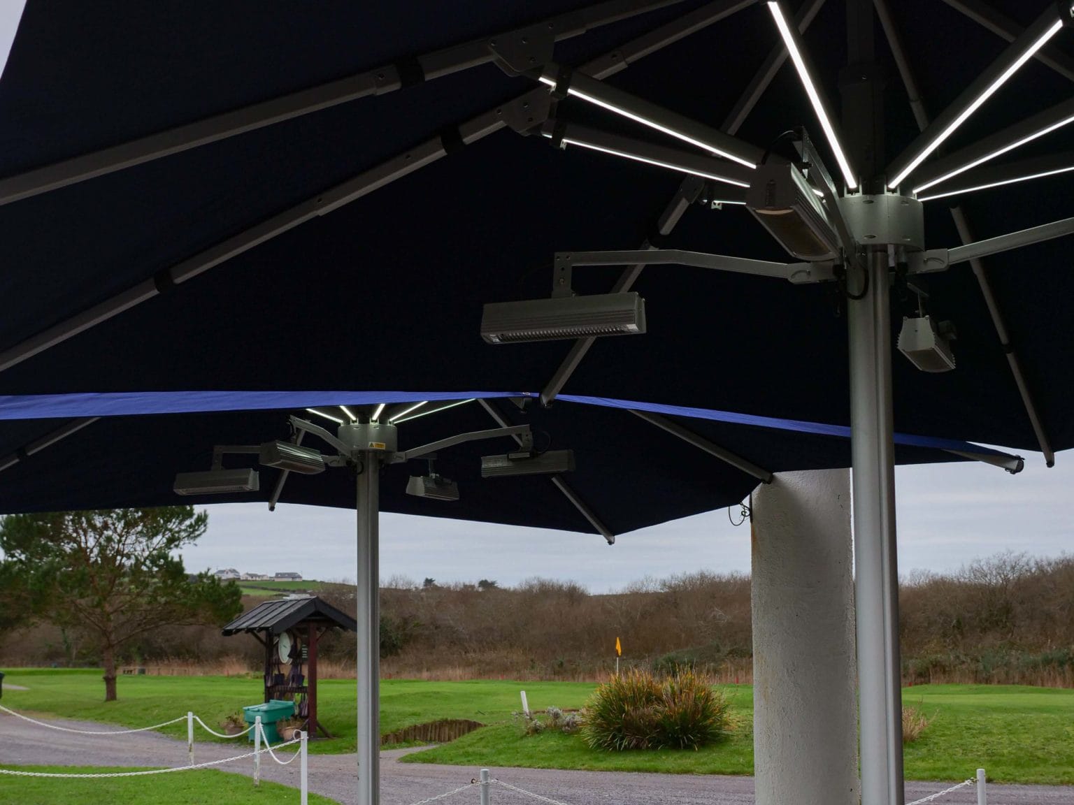 The parasols were fully branded with the golf club logo and bespoke fabric colours. Our heat and lighting option was also fitted to ensure members are kept warm all year round.