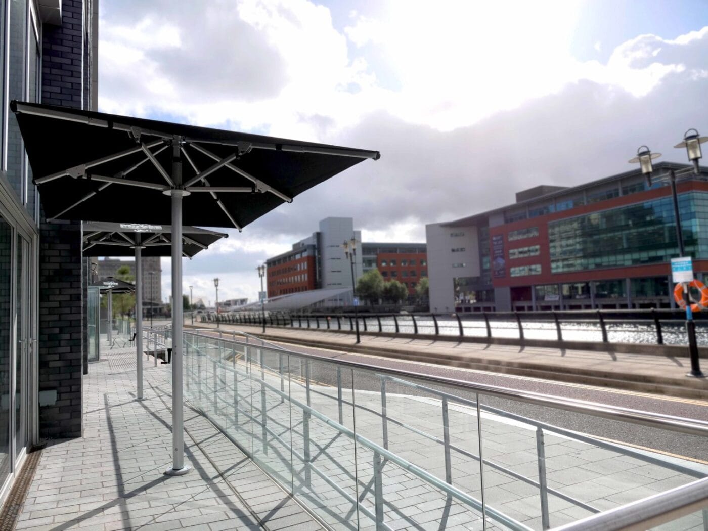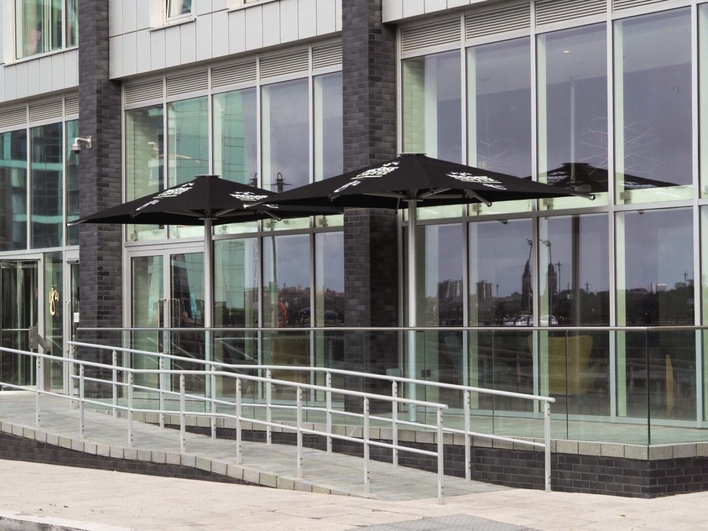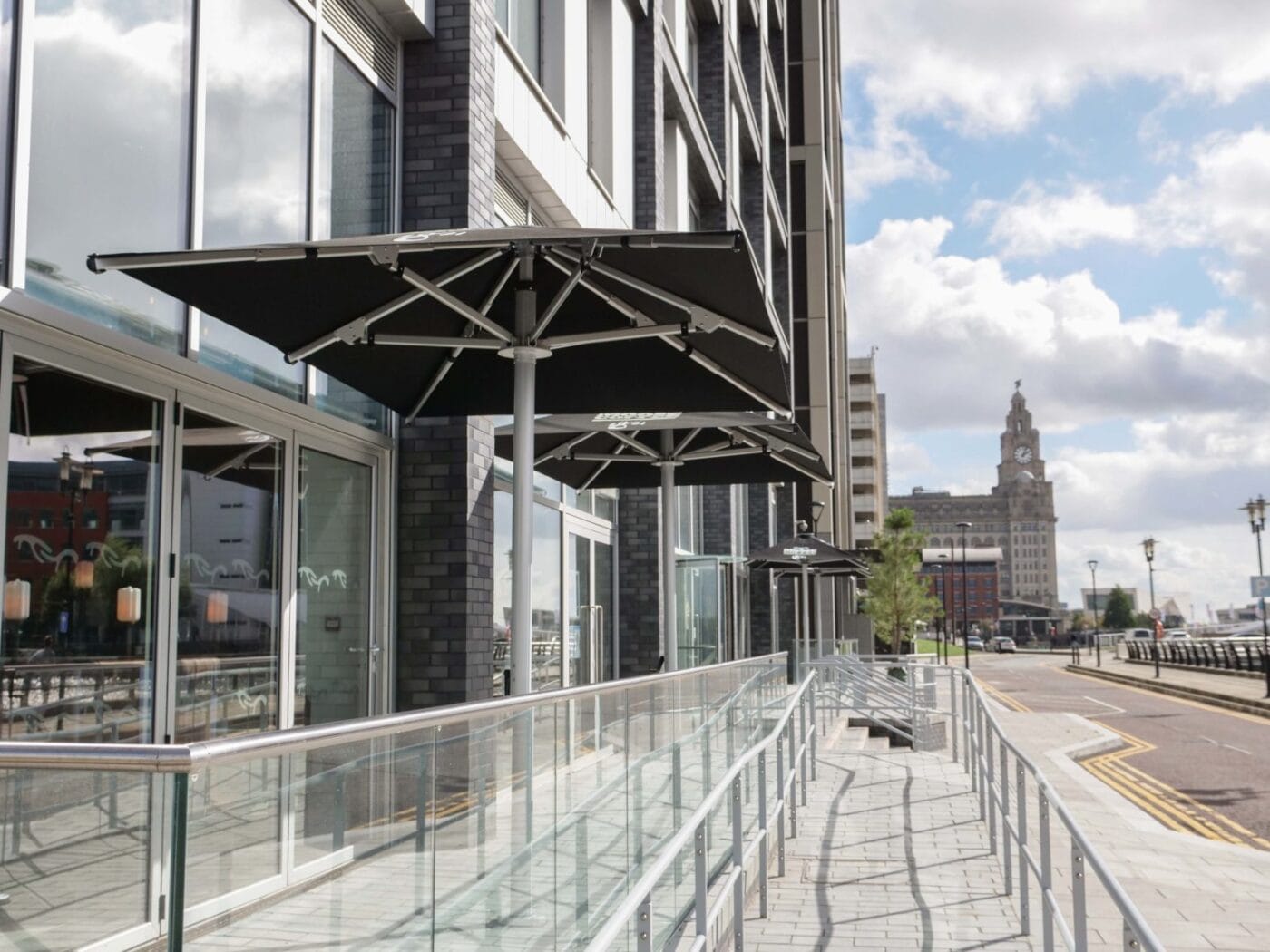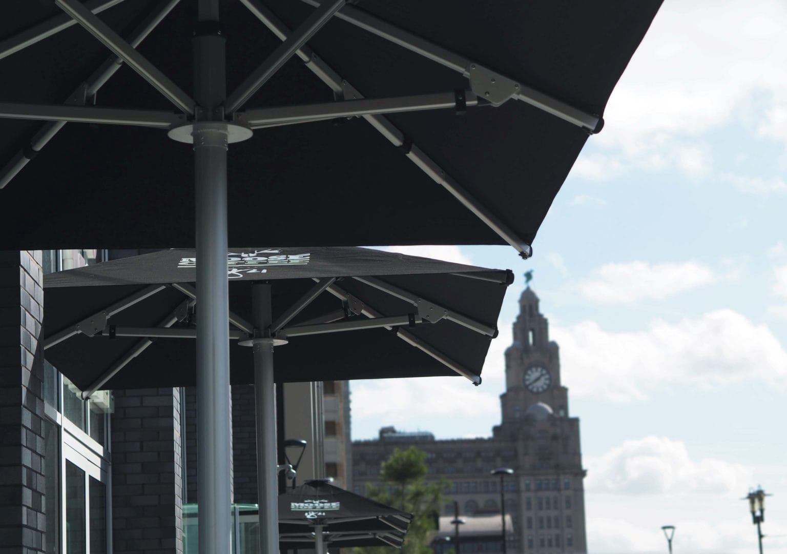 We installed 4 of our 3.5m x 2.3 commercial Nova Parasols fully branded with Moose Coffee’s logo printed on all sides. This helped to achieve extra brand exposure whilst keeping customers sheltered all year round with a clean modern aesthetic.