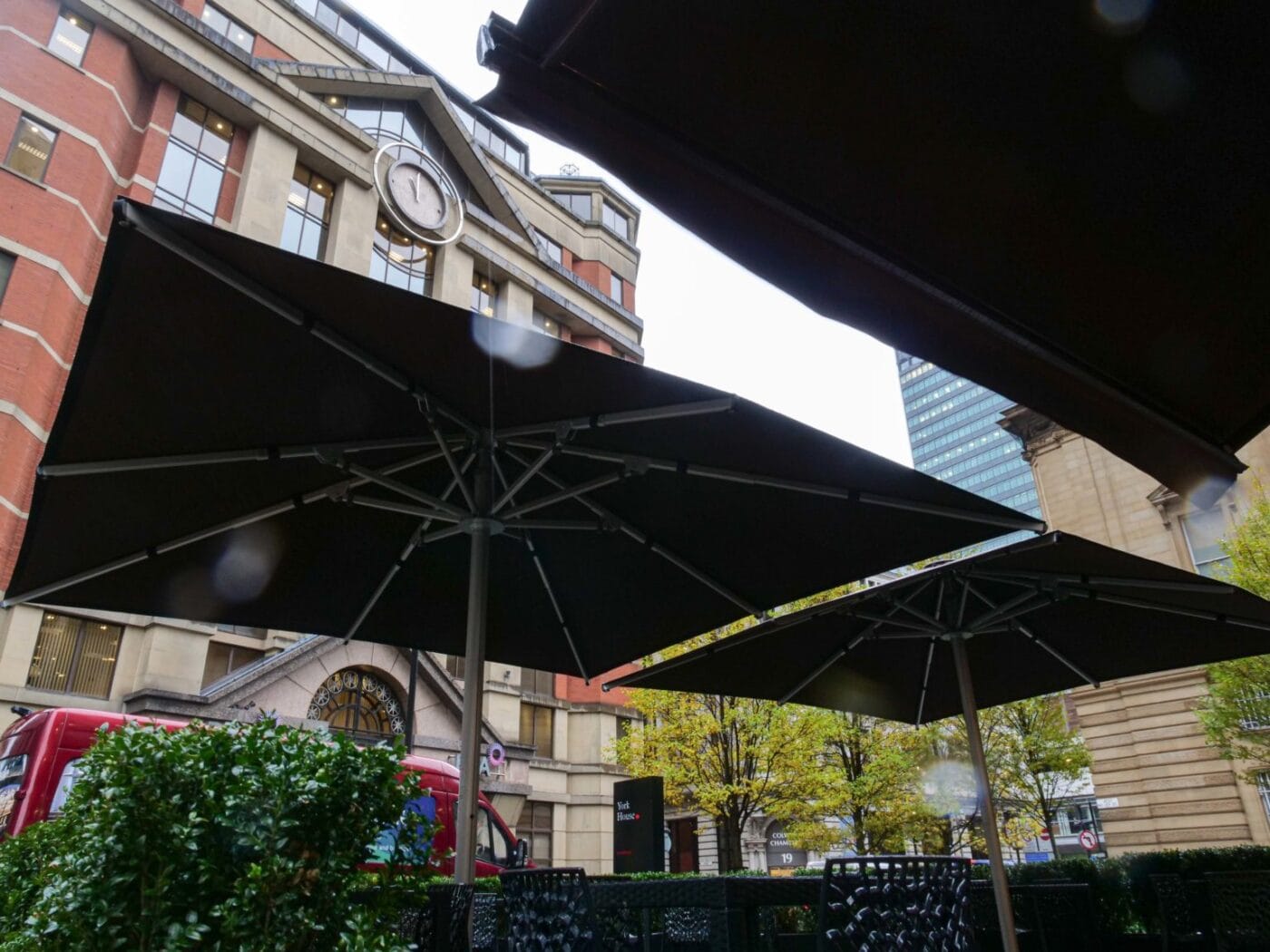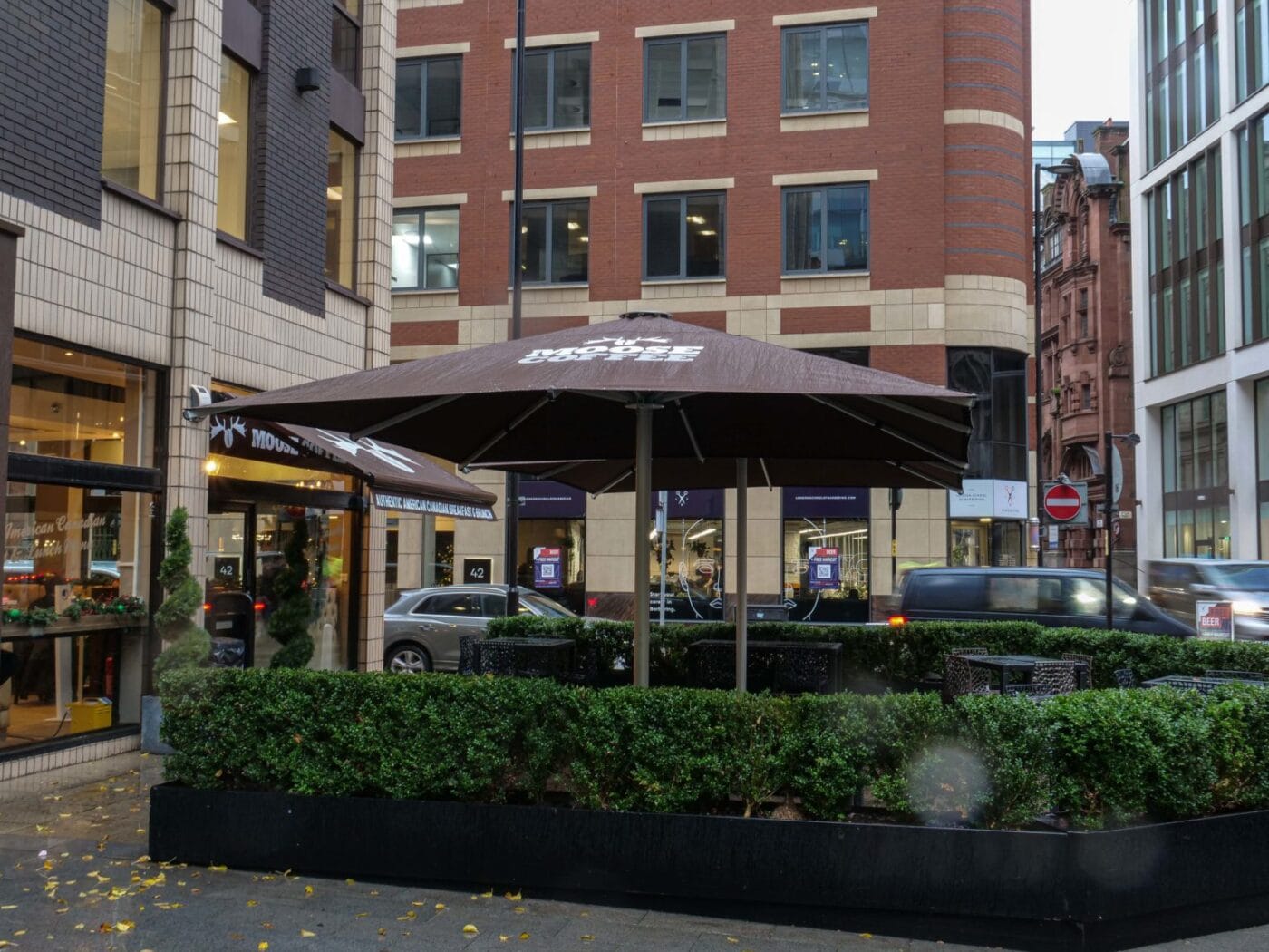 This was our second time working with Moose Coffee, after a recent parasol install we did outside their new Liverpool branch they got in touch with us for something similar at one of their café’s in the heart of Manchester.