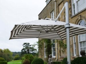 Therefore Moose Coffee opted for 2 of our 4m x 4m commercial Nova Parasols to be installed. They chose to have these fully branded with their logo printed on all sides and finished off in a custom brown colour to match the rest of their café branding.