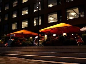 Originally, we installed six of our 3m Nova parasols and the council were so delighted with it that they later ordered an additional six Nova parasols alongside fully branded Café Screens.
